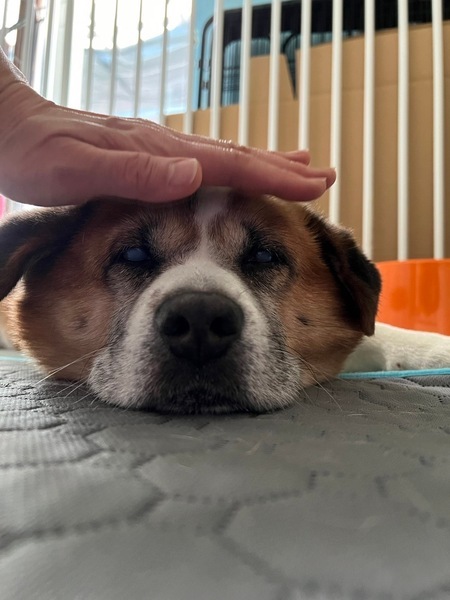 | 特徴(性格など) | 【はじめに】 ◉預かりブログ・HP・譲渡条件を必ず】熟読の上、アグリドッグレスキュの専用フォームからご応募お願いいたします アグリドッグレスキューHP https://aguri.nomaki.jp/ 預りブログ:千代エル乙女の日常日記&アグリドッグレスキュー https://ameblo.jp/chiyo-el-lovelove/ 譲渡条件 http://aguri.nomaki.jp/z.html ★【アグリドックレスキュー応募アンケートフォーム】★ http://my.formman.com/form/pc/HSiHA19xGo1sxlwu/ MIXの男の子 ・年齢 推定10歳以上 ・体重22.75kg(要減量) ・血液検査済 ・フィラリア陰性 ・ワクチン接種済 ・ノミダニ駆除済 ・マイクロチップ装着済 ・去勢手術済 ・スケーリング済 ・角膜内皮ジストロフィー(左眼は若干反応あり、右眼はなし) ・尿結石あり(経過観察中) ・皮膚のかゆみのため抗生剤服用中 ■性格・特徴 穏やかで優しい子です。 体のどこを触っても嫌がらず、歯磨きもできます。 人に飛びつくことはなく、お散歩も引っ張りはありません。他犬には無反応です。 甘えん坊ですが、自分からぐいぐい甘えるよりは、控えめに人間の近くにいるタイプです。 預り宅では甘えて鼻鳴きしますが、要求吠えは今のところありません。 角膜内皮ジストロフィーのため点眼が必要ですが、点眼薬もジッと我慢できます。 ナイーブなところがあり、環境変化や去勢手術後は排泄を我慢したり、食べなくなったりします。(1日待てば戻ります。) 太り気味とモフモフにより暑さに弱いです。 ■体調 保護当初は、血液検査で肝臓の数値高めで、外耳炎の所見がありましたが現在では問題ありません。 また、眼圧も保護当時よりは下がってきました。 少々太り気味なので、ダイエットが必要です。 尿結石がありましたので結石用フードを食べて経過観察中です。 ■ごはん あまり食に執着がなく、ごはんを残すことが多いです。(結石用フードがお気に召さない様子) トッピングを追加すると何とか食べてくれます。 人間の食べ物(匂い・音)に反応し欲しがりますが、注意すれば諦めます。 ■トイレ 排泄は完全に外派です。 現在は、散歩の時か、預り宅の庭で排泄しています。 ■お散歩 1日2回、20~40分のお散歩をしています。 ハーネスが苦手で、ハーネスをつけると歩かなくなります。 現在は首輪を2本つけて、ダブルリードにしています。 ■お留守番 寝ている時間が多く、お留守番は上手にできます。 預り宅では、今のところイタズラはありません。 ただし、シニアで持病があることから、不調の際、そばにいてあげられる環境が望ましいです。 |