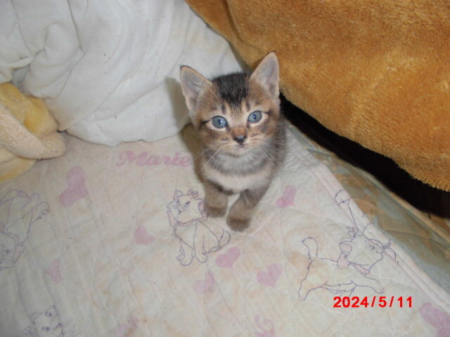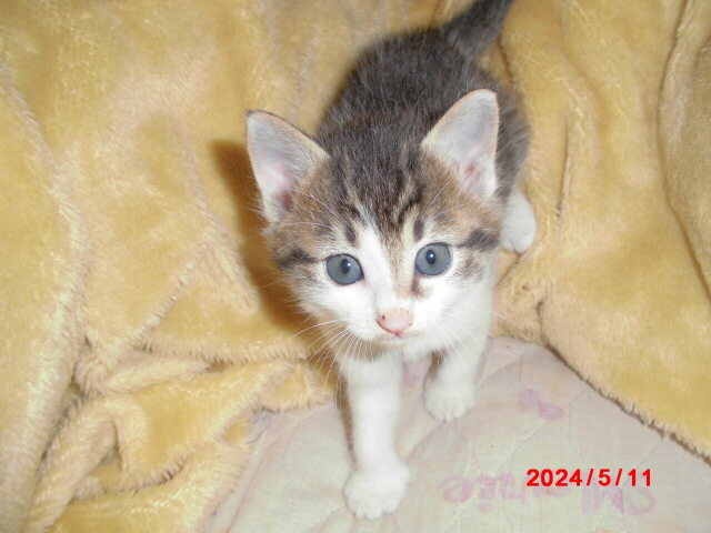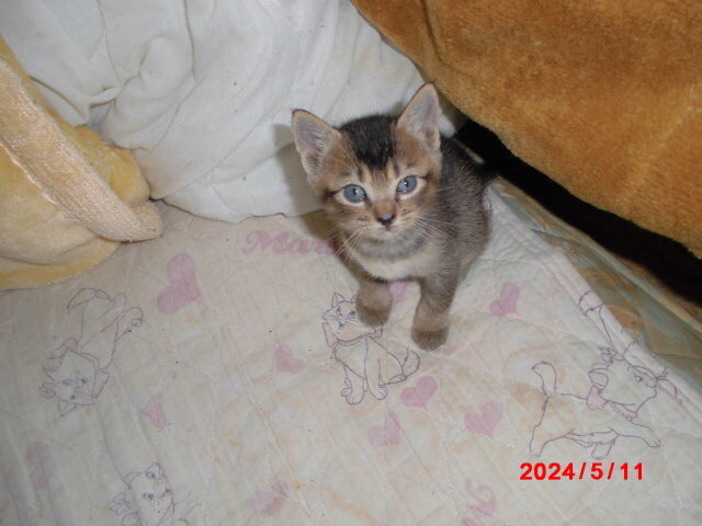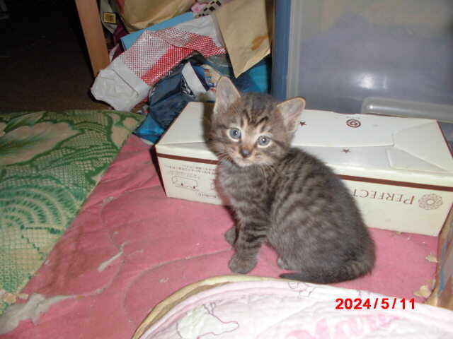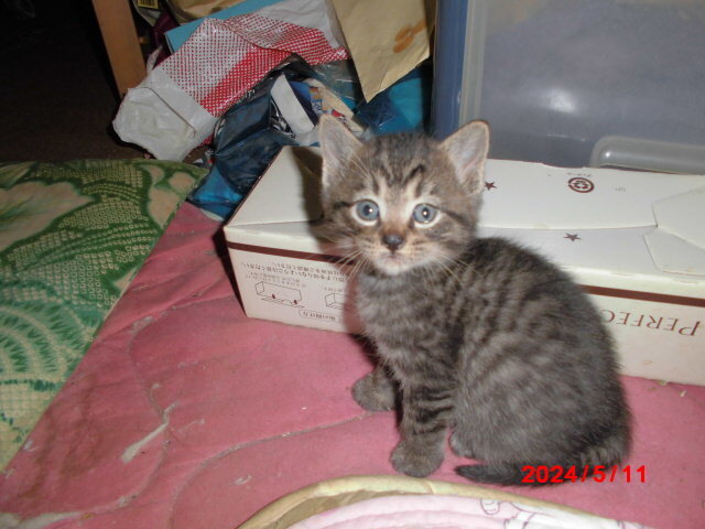 | 特徴(性格など) | 家の軒下にいた子猫を保護しました。黒系4匹と白黒1匹です。オス猫3匹メス猫2匹です。 | ||