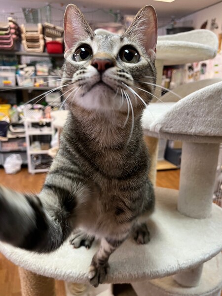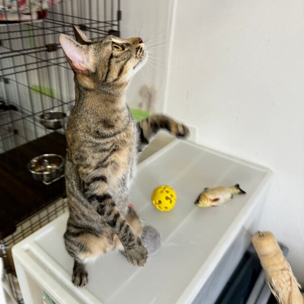 | 特徴(性格など) | 2022.8.25生まれ(推定) 毛色:キジトラ とーっても甘えん坊で元気いっぱい!小顔にクリクリおめめのクリン♡ なでなですると身体をくねくねさせながら「うにゃうにゃ♪」と 歌うみたいに鳴いたりと、クネクネ・コロコロかわいさ満点です!! ゴハンも大好き、食いしん坊。おトイレの砂掛けは、結構激しめ笑 遊ぶのも大好きな天真爛漫なクリンちゃんに、メロメロになること間違いなし!! 他の猫にはちょっぴりヤキモチ焼きだったり、ちょっと近づいただけで 『酷いコトされたー!!!』と大袈裟にアピールすることがあるので、 クリンだけを見てくださるご家庭の方が良いかもしれません。 |