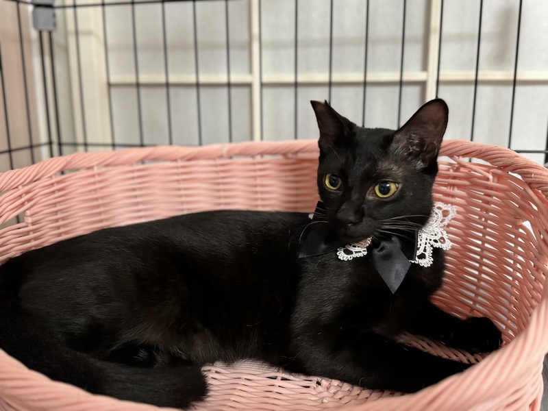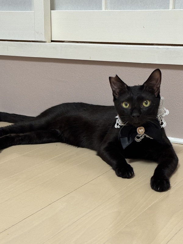 | 特徴(性格など) | 艶々な被毛の黒猫くん 兄弟がシャム柄でエキゾチックなシュッとした顔立ちです。 ツンデレのツンが無いデレデレな性格。 最初は少しビビりな面もありましたが、すぐに慣れて頭を押し当てて好き好きアピールをするようになりました。 ナデナデ大好きで抱っこもできます。 猫と甘々な生活がしたい人向け。 |