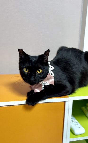 | 特徴(性格など) | 瞳の色がオレンジがかっていて特徴的で綺麗です。ふわふわの柔らかい被毛を持った黒猫。 兄弟がシャム柄でしたので、エキゾチックな小顔です。 明るくおっとりした甘えん坊さんで申し分の無いいい子ちゃん。 仲良しの黒猫兄弟に、いつもグルーミングをしてあげる優しい性格です。 胸とお腹にエンジェルマークの白い毛が生えています。 特にお腹の白い毛の部分がおぱんちゃの様で可愛いです? 性格が良いので猫を飼ってみたい初心者さんにも甘々なパートナーになれると思います。 |