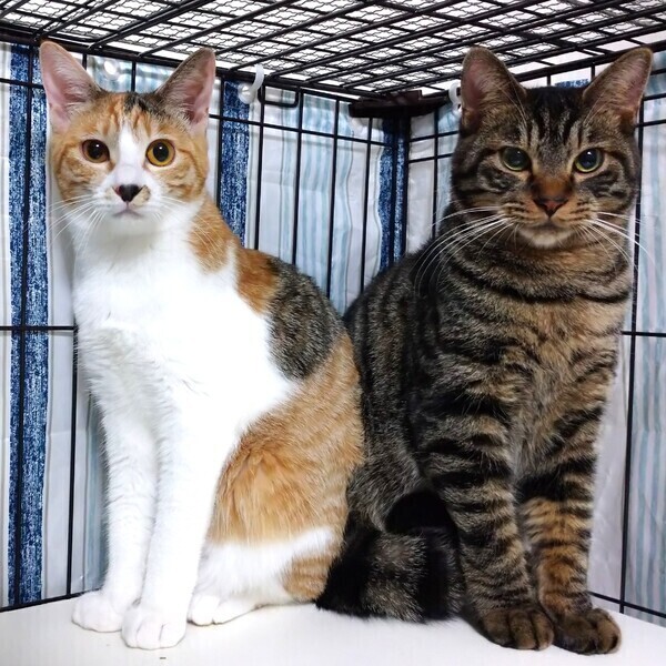 | 特徴(性格など) | ◎ピーナッツ(キジトラ・オス)→尻尾が太めの男子。最初は警戒心がありましたが、今は自分からスリスリ甘えにくることもあります。 ◎ランタナ(三毛・メス)→尻尾がとても短い女の子。まだ人に対してはビビりです。本当の兄妹ではありませんが、ピーナッツをお兄ちゃんのように慕って甘えています。 ●健康状態 とても健康で元気です 避妊手術済み ウイルス検査(エイズ・白血病)陰性 ワクチン 駆虫 検便 シャンプー 爪切り |