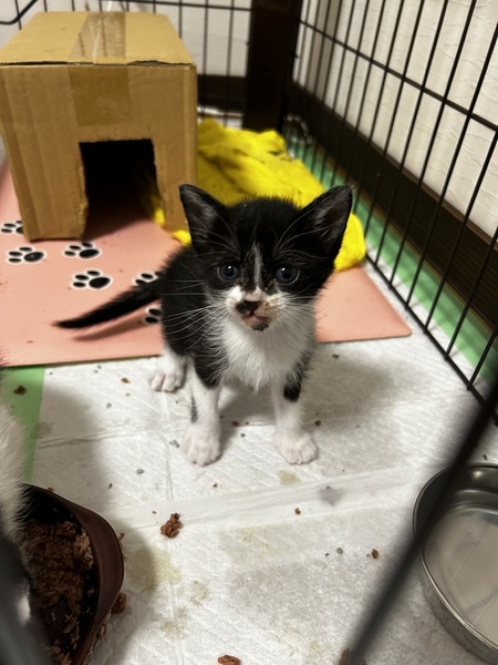 | 特徴(性格など) | 4匹のうち3匹は黒白、もう1匹はサビ?三毛?のような感じです。写真でご確認下さい。 4匹ともたくさん食べて、たくさん遊びます。性格はサビはやや慎重な感じで、黒白達はひたすら自由に動き回ります。 |