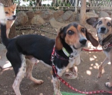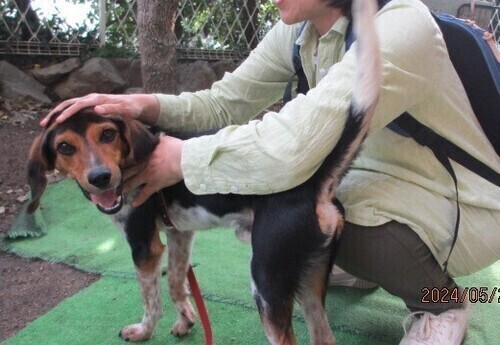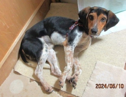 | 特徴(性格など) | ※近日中にトライアル開始予定です。実際にトライアルが始まりましたらいったん里親募集は終了させていただきます。 ●新緑の季節にちなんで仮名を「緑(リョク)君」と命名してもらいました。 ●リョク君は体重8キロ台の、若くて小柄なビーグル風のワンちゃんです。 トライカラーの、おしゃれでユニークな毛色がステキです! ●人懐っこくて、犬にも人にも誰にでもフレンドリー。 明るく陽気で裏表のないハナマル性格の男の子です。 お散歩も上手だし、ゴハンは、何でも美味しい、美味しいって食べてくれるし、素直で飼いやすいワンちゃんだと思います。 ただ、ビーグル特有の響くような吠え声なので、お家の環境を選ぶ必要はありそうです。 ●快食快便、特に食欲は旺盛で、何でもモリモリ・ガツガツ食べます。 ●ノミダニ駆除薬・虫下し・フィラリア予防薬投与済み。 ●狂犬病ワクチン接種済み。 |