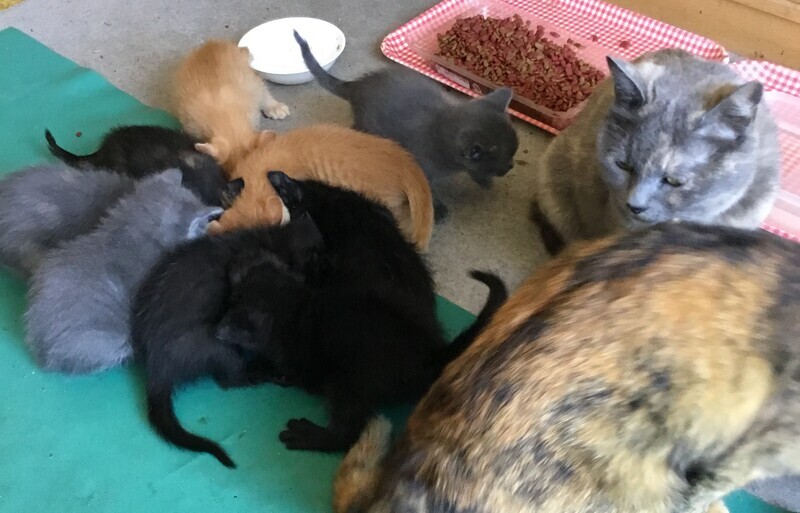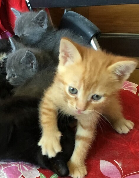 | 特徴(性格など) | 全ての仔猫は、人に慣れています。警戒心なし・トイレしつけは出来ています。 ・茶トラ 1匹(♂)全身茶色のトラ柄、人懐っこい、飼い主のズボンから背中で休憩します ・グレー X3(3匹決定)仔猫より少し毛長(モフモフ)、口周りが白っぽい、一匹鍵尻尾 ・黒 X3(2匹決定)1匹(♂)体が大きめ、人懐こい ・サビ X1(♀)母猫と同じサビ柄(黒が多め)、おっとりした性格 今、4匹いますのでよろしくお願いします。 |