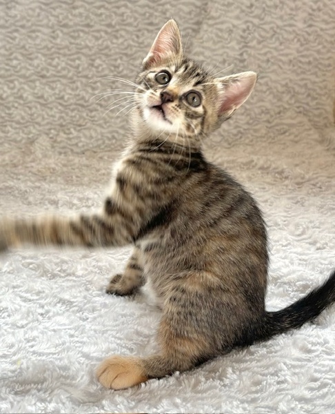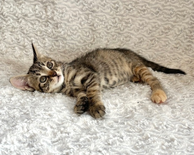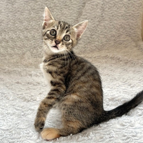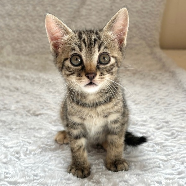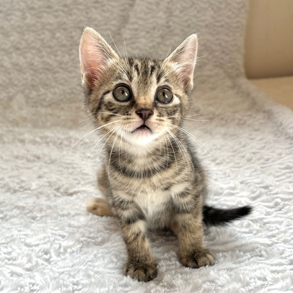 | 特徴(性格など) | 【仮名】葉月ちゃん 【性格】キジトラど真ん中の葉月ちゃん♪ 会場でははーちゃんと読んでくださいね♪ 今回の仮名は月シリーズです(笑) 正直、兄妹の卯月と間違えます(笑) そのくらいソックリさんなんです♪ でも性格は個性が出てきていて このコは甘えんぼの妹気質♪ 気づけはちゃっかりおヒザをキープ♪ 甘え上手なコですね(笑) 兄妹と元気に遊んで良く寝てよく食べ スクスクと成長中のハナマルにゃんこ♪ ともに過ごしている兄妹or同世代にゃんこと 一緒のお迎えをお願いしたいと思います♪ ※1ピキ譲渡不可 |