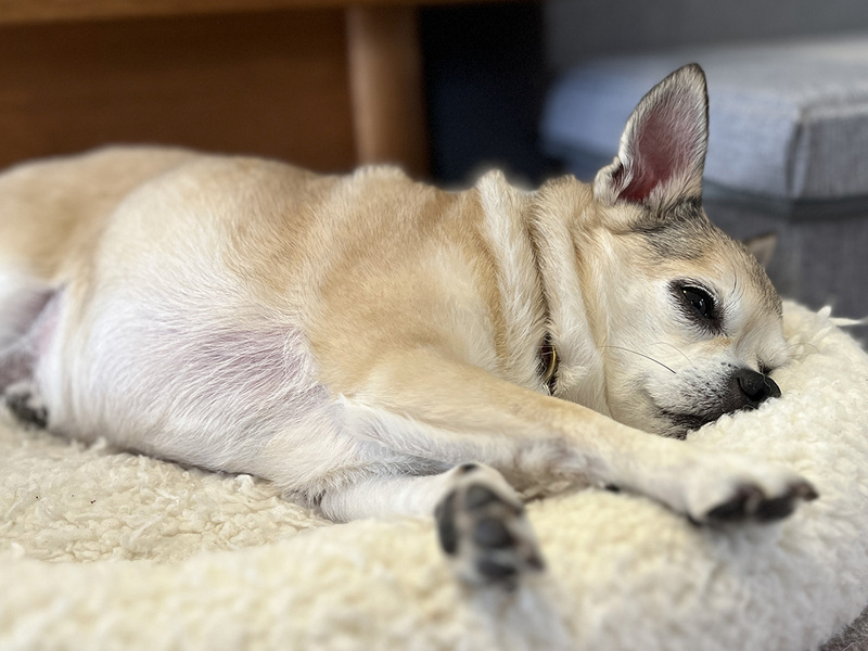 | 特徴(性格など) | 毛ヅヤ&毛ぶきが良く、ちょっとぽっちゃり体型。“飼育放棄”とひとことで言っても事情はさまざまですが、状態の良さ、またとても人馴れしている様子からも、大事に飼われていたのではないかと想像しています。 おしりをナデナデしてあげると思わずしっぽをぶんぶん振っちゃう。人間大好き!なたまよちゃんです。 ★☆性格☆★ ちょっと怖がりな面はありますが、チワワにしては控えめな部類ではないでしょうか。 基本的に人間のことが大好きで、どこにいても後をついてこようとするくらい。ソファに座ったらぴったり横に寄り添ってくれます。 ★☆ごはん☆★ 選り好みが激しく、食にはかなりのこだわりをもっている様子。ドライフードはほとんど食べず、ウェットフードもお好みではないご様子です。 好きなのはソフトタイプのセミモイストフードで、手からあげると食べてくれる…といった感じです。 ★☆散歩☆★ お散歩大好き!14歳とは思えないほどしっかりした足どりで、スピーディ&リズミカルに歩いてくれます。 地面の凸凹を気にすることもなく、グレーチング(排水溝の金属のフタ)もひょいっとジャンプ。何事もなかったかのように歩いていきます。 30分程度はラクラク歩きますし、足腰の筋力維持(とダイエット笑)を考えてもう少し長めに行っても良いかもしれません。 ★☆トイレ☆★ おしっこは室内外の両方、ウンチは外で、が現状です。 室内でのおしっこに関しては、びっくりするくらいトイレ(トイレシート)の認識が早く、ほとんど外すことはありません。かなりのおりこうさんです。 ★☆留守番☆★ 人間大好き!ではありますが、分離不安のようなことはなく、留守番もへっちゃら。おとなしくできます…というか、ほとんど寝てるみたいです(笑)。 ★☆他の犬との関係性☆★ 他の犬は、正直に言って苦手です。保護宅の先住犬15kgに吠えてかかるなど強気な姿勢は、チワワならではの気の強さ、といったところでしょうか。 散歩時に出会うワンちゃんも、寄ってこられると吠えて追い返したり。噛みついたりケンカに発展したりすることは(現状では)ありませんが、いずれにせよ得意ではありません。 そのため、先住犬のいるご家庭は不可とさせていただきます。 ★☆健康状態☆★ 体型だけ見れば「パグ!?」と思ってしまうくらい、ぽっちゃり&がっちりしています(笑)。筋肉量が豊富なのは良いことですが、それにしてもちょっと太り気味(適正体重は3.2~3.3kg程度?)なので、現在ダイエット中です。 健康診断、また血液検査の結果からも大きな異常は見られず、14歳のチワワの健康状態としてはかなり良好な部類に入ると思われます。 ==パテラ(膝蓋骨脱臼)について 左右とも後ろ足にパテラの症状が見られ、グレード1…よりはちょっと高め、と診断されています。獣医さんの見立てでは「外れて、戻って…を繰り返しているうちに、それが自然になっているのでは。本人も痛みを感じたりはしていないと思います」とのことでした。 パテラのケアという面でも、体重管理には気をつける必要があります。 ==白内障について 初期段階の白内障と診断されており、これから進行していく可能性があります。現段階では特別に治療してはいません。 ■□■□■□■□■□ ◆募集番号:194n ◆仮名:たまよ ◆犬種:チワワ ◆性別:メス(避妊手術済) ◆年齢:14歳 ◆毛色:薄茶(フォーン) ◆体重:3.6kg(2024年4月27日時点) ◆マイクロチップ:済み ◆狂犬病ワクチン:済み(2024年3月6日) ◆5種混合ワクチン:済み(2024年3月13日) ◆フィラリア検査:陰性(2024年3月9日) ◆糞便検査:陰性(2024年3月16日) ◆血液検査:済み(2024年4月27日) ◆その他健康状態:若干の歯石の付着が見られますが(特に上歯)、年齢も鑑みてスケーリング等の処置は施していません。 ◆お見合い場所:東京都目黒区 ========== 現在のたまよの様子については、下記「保護犬日記」でご確認ください。 【たまよの日記】 https://copain-dogrescue.com/diary/diary-tamayo/ |