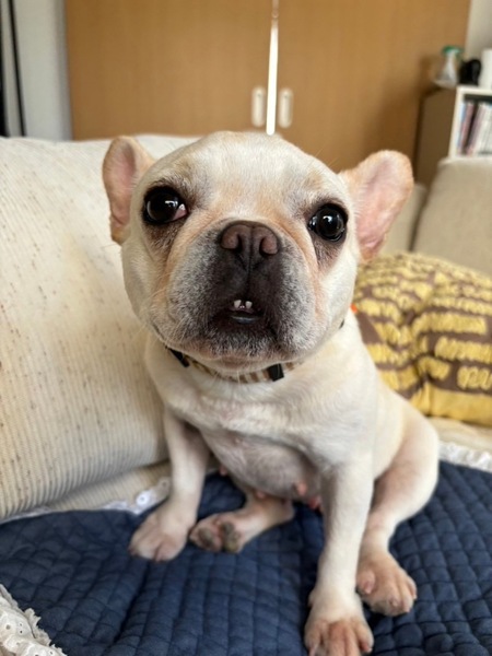 | 特徴(性格など) | ■特徴(仮の名前:うめ) フレンチブルドッグ♀ 3歳 体重6.7キロ(適正) ■性格・暮らし ・人が大好きで、甘えん坊です。 ・他犬とも問題なく過ごせます。 ・ペットシートの認識はありますが、失敗もあります。 ・お散歩は上手に歩けます。 ・食べることが大好きです。 ■今までに行った医療行為 ・避妊手術 ・混合ワクチン接種 ・フィラリア抗原検査(ー) ・検便 ・歯石除去 ・血液検査 ・マイクロチップ装着 ■今後行う予定の医療行為 ・なし |