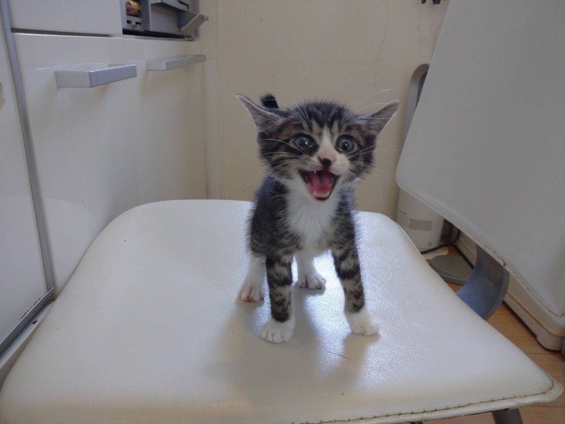 | 特徴(性格など) | キジ白ソックスでしっぽ長めです。 ヤンチャで運動神経抜群です。 里親会までには性別はわかっていると思います。 ウィルス検査も終わっている予定です。 トライアルは離乳食をしっかり食べ、初期医療が済んでからとなります。 ご了承の上、まずは里親会にお越しください。 |