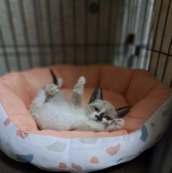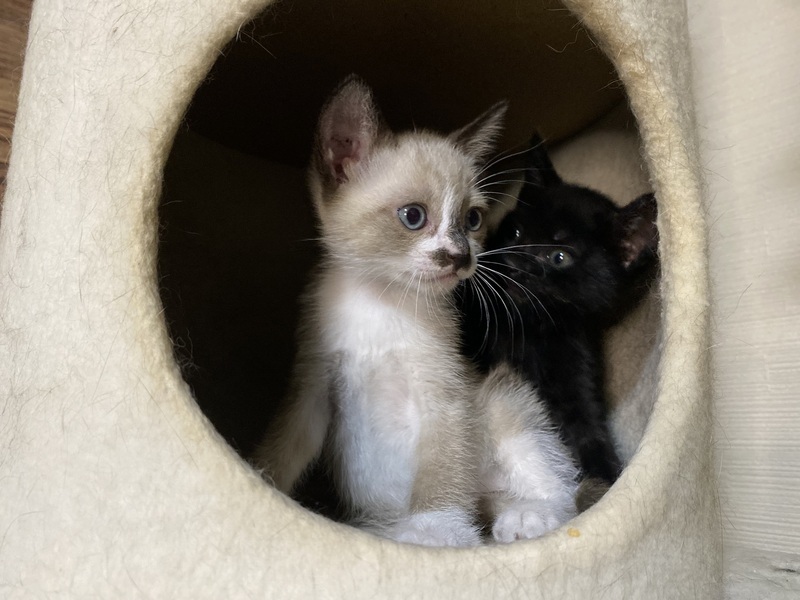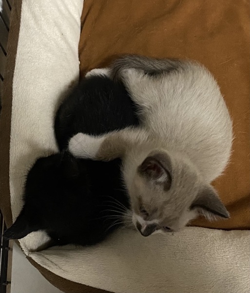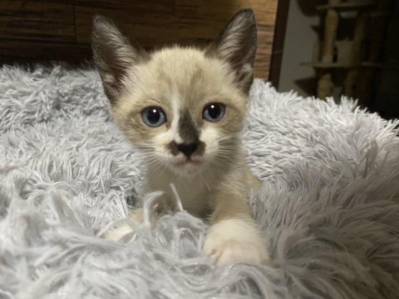 | 特徴(性格など) | シャムmixチャムくんの体重は550g。 よく食べて良いうんちをします。 尻尾はまっすぐで耳と尻尾が黒。 身体はベージュです。 歯が生えているので離乳を開始しミルクも混ぜて与えています。 とても人懐こくて甘えん坊の男の子です。 手で遊んでやると甘噛みと蹴り蹴りをします。 寝ていて目覚めると可愛く甘えてお腹を見せます。 母猫を求めてベッドでチューチューするのが切ないです。 いっぱいかまってもらえるご家族に巡り会えますように。 黒猫クゥちゃんの里親さん宅からクゥちゃんが戻ってきました。先住ちゃんが怖がるとのこと。 急遽、2匹同時募集いたします。 黒猫は女の子。黒猫ですが頭の後ろに薄くキジ柄が見えます。後ろ姿の画像でご確認ください。 クゥちゃんは静かで穏やか。チャムくんの方がやんちゃです。 少しチャムくんより身体が大きく体重580gです。 5/29病院で健康診断をしてもらいました。 どちらも健康。元気もりもり快食快便。 検便、駆虫済み。 ワクチン接種はまだ早いとのことで2週間後くらいに予定しています。 ウイルス検査等はもう少し大きくならないと正確な結果が出ませんので、里親さんにお願いする形になります。 仔猫は母猫の抗体に守られるので、猫エイズ等の感染はまずないと思います。 見学大歓迎。 近県の方はご希望でしたらお届けします。 |