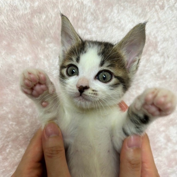 | 里親募集する理由 | 保護時に後期妊婦だった母猫から生まれた子です。生後7~10日ほどで母猫が育児放棄をしてしまい、以後人間がミルクで育てました。 | ||