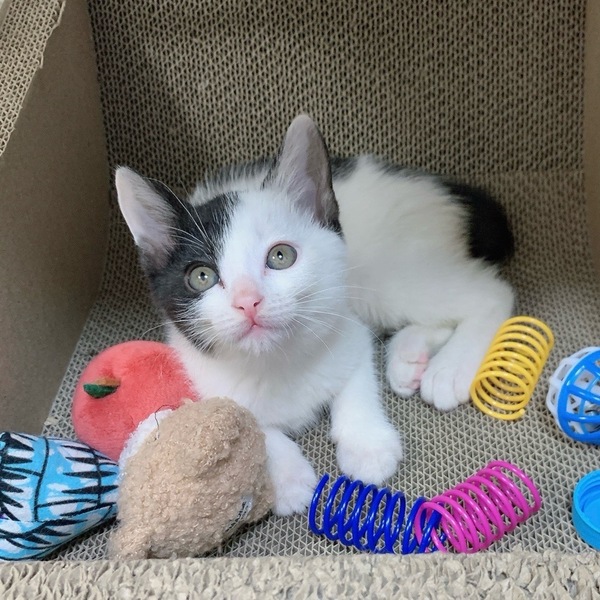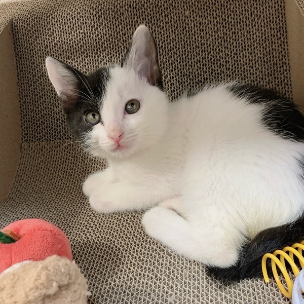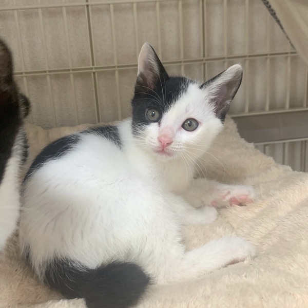 | 特徴(性格など) | 保護時に後期妊婦だった母猫から生まれました。生後7~10日ほどで母猫が育児放棄してしまったため、以降は人間がミルクで育てました。そのおかげで人間に警戒心がまったくなく、ひたすら甘えん坊です(笑)未熟児でかなり小さく生まれ、人口哺乳に切り替えた時になかなかミルクを飲んでくれなかったり、下痢が続いたりと心配が尽きなかったのですが、ミルクボランティアさんがそれこそ命を削り、一生懸命に育てて下さり無事に育ちました。そのおかげで人間大好きな甘えん坊さんに育ってくれました。 ファーファくんはその中でも1、2を争う甘えん坊で、遊んでいても人間のお膝が視界に入るとすぐに乗っかってきて、ゴロゴロと喉を鳴らします。 遊ぶときは全力!高い所から落ちようが、転がろうが気にせず走り回っています。これからもっともっと個性が出てくる時期ですし、どんな子に成長するかとても楽しみです。 ファーファくんはかっちり横分けと、背中に立派な日本列島があるのが目印です。 ファーファくんとドーナツくん、レミちゃんは実の兄妹ですが、かぶきちゃんは2匹の母猫の姉妹から生まれた子になりますので実の兄妹ではありません。(人間でいるところのいとこ)母猫がそっくりな白黒姉妹で、出産も1日違いでした。なので4匹は一緒に兄妹のように育っているのでとても仲良しですので2匹一緒のご縁もとても嬉しいです。 まだまだ小さい子猫なので、健康管理をしっかりしてくださる方、安全に暮らせる様にお部屋のお片付け(子猫なので誤飲などに注意が必要です)、目に見える形での脱走防止対策を徹底してくださる方、また長時間のお留守番のないご家庭を希望しています。対策等でわからないことは アドバイスさせていただきますので、疑問点などは遠慮なく聞いていただきたいです。 ご自宅の玄関・開ける窓・ケージを置くお部屋などのお写真をご持参いただきますと、より具体的なお話ができると思います。 |