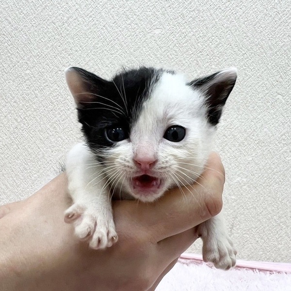 | 里親募集する理由 | 保護時に後期妊婦だった母猫から生まれた子です。生後7~10日ほどで母猫が育児放棄をしてしまい、以後人間がミルクで育てました。 | ||
