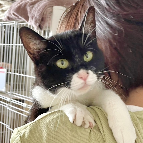 | 特徴(性格など) | 黒白猫の黒ずきんちゃん。 性格はとっても甘えん坊! ベタベタ甘えてきてくれるので、とても飼いやすいと思います。 いつもボランティアさんにだっこしてもらって、満足げに腕の中に収まっています。 黒ずきんちゃんが安心して過ごせるおうちをさがしています。 当団体のホームページや他のサイトでも同時に募集を行っています。少しでも気になられましたら、どうぞお早めにお問い合わせくださいね。 |