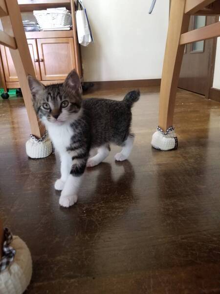 | 特徴(性格など) | ●猫の特徴など ①チビちゃん オス キジ白 生後2ヶ月くらい [掲載番号]C348386 の茶白と兄弟 ●健康状態 良好。 ノミ・ダニ駆除済み。 ご飯もよく食べて元気です。 ワクチン接種済み。 ウィルスチェック エイズ及び白血病共にマイナス。 |