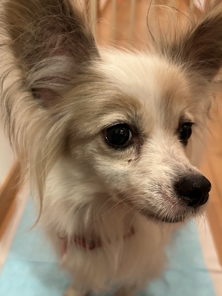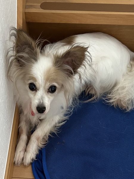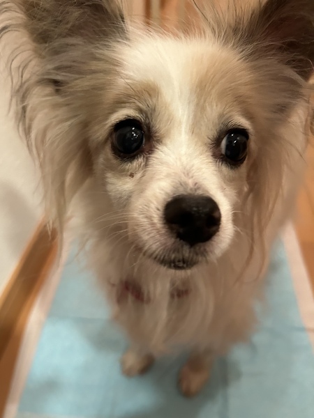 | 特徴(性格など) | 犬種:パピヨン 毛色:ブラウンホワイト 年齢: 6歳2ヶ月 体重: 4.3kg 性格:臆病 トイレ: まだわかりません。シートの上で出来ることもあります。回数少なく、まとめて出す 散歩: 練習中 日常の様子:ほとんど吠えることも動き回ることもなく、ゲージ内で緊張しています。たまに吠える声は太く勇ましい感じです。同居犬にも興味、関心を示しません。撫でられるのは大丈夫ですが、抱き上げようとすると身構えます。男性が苦手かもしれません。 お手入れ:毎月のトリミング・毎日のブラッシング・歯磨き・耳掃除・涙やけケアなど フード: フィッシュ4にトッピング 健康状態 フィラリア:陰性(-) ワクチン:5種混合接種済み マイクロチップ:装着済み 避妊・去勢:手術済み その他:触診・聴診・血液検査・検便、異常なし、駆虫薬投与・ノミダニ駆除済み・スケーリング済み |