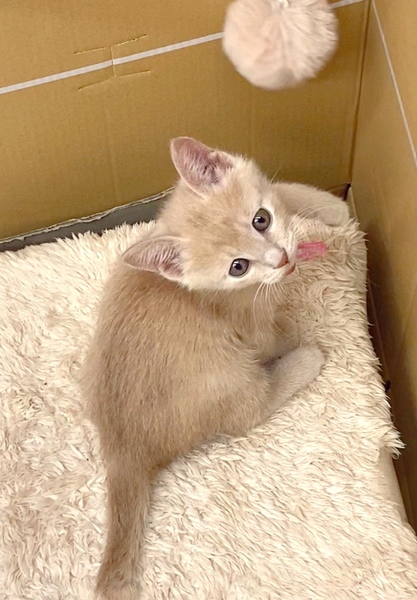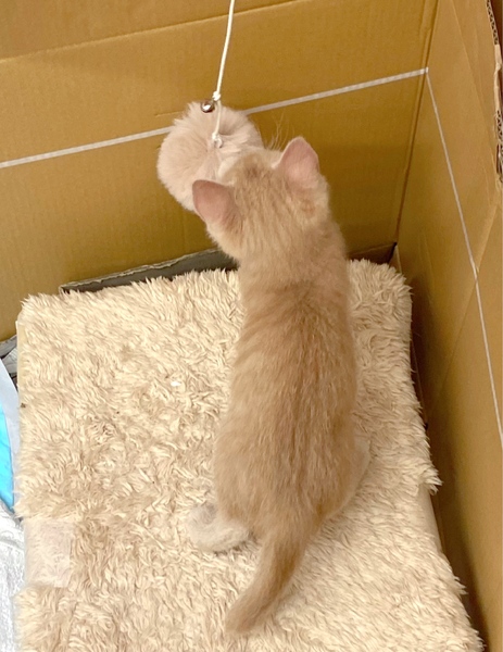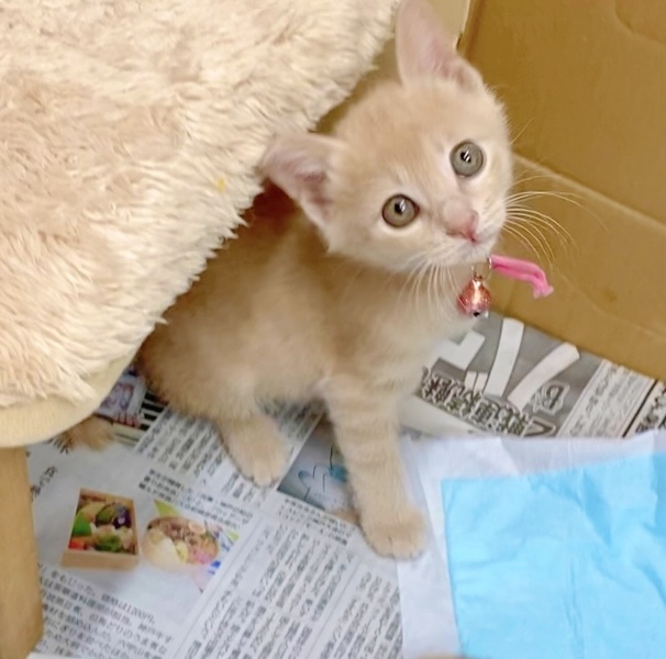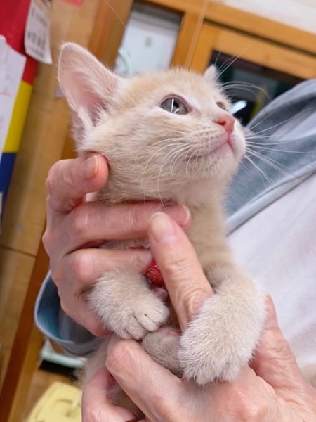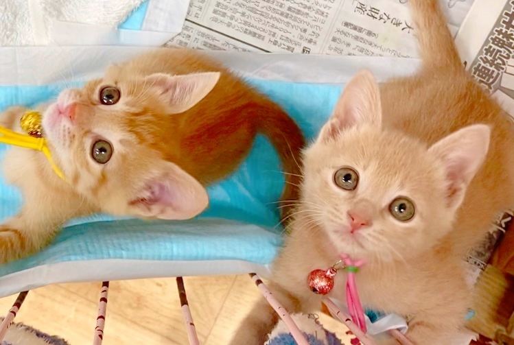 | 特徴(性格など) | 数少ない茶トラの女の子です。 ミルクから人の手で育てたため、とても人懐こくスリゴロです♪ 初めて猫を ちゃんを迎える方、お子様のいるお家でも、安心して飼ってもらえると思います。 エイズ検査が偽陽性でしたが、まだ生後2ヶ月足らずのため、お母さん猫の抗体が移行しているだけと思われます。 健康には問題なく、数ヶ月後の再検査で陰性に転じる可能性が高いです。 ご理解のある里親様、仲良し姉妹2匹で迎えてくださるお家、歓迎します。 ワンちゃんも怖がらず、仲良くできます。 ぜひ一度、会いにお越しください♪ |