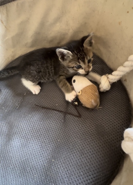 | 特徴(性格など) | ・キジ猫ちゃん ほかの方もご相談中ですが、まだご連絡待ってます。 ・キジトラちゃん 兄弟と比べて身体が小さくかわいい子です。 よく食べてよく遊んでいます。 ・灰色猫ちゃん 毛が長めでふかふかしています。元気で良く食べます。 子猫たちはとても元気で、人懐っこい性格です。健康状態も良好です。新しい家族として迎え入れていただける方を探しています。 |