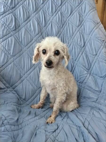 | 特徴(性格など) | トイプードル 名前は、シェリーちゃん 体重 2.5kg ワクチン 接種済み レボリューション 済み フィラリア 陰性 パテラ 問題無し 心雑音 問題無し 避妊手術 済み とても人懐っこく無駄吠えありません。 手入れもされずにいたかと思います。毛も汚れてボサボサでしたので、トリミングしてもらい綺麗になりました。 まだまだプードルらしくありませんが、何ヶ月後を想像していただければとても可愛くなりますので、シェリーちゃん、余生を温かいお家で過ごさせてあげたいと思います。 宜しくお願いいたします。 |