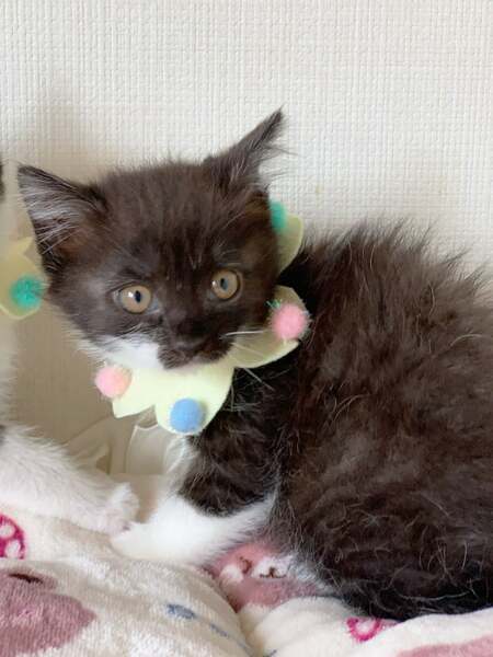| 里親募集する理由 | お寺に母猫に育児放棄をされた仔猫4匹がやせ細った状態でいたため保護しました。 | ||