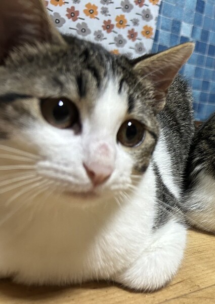 | 特徴(性格など) | キジシロの女の子です。活発でお転婆さん、 おもちゃで遊ぶのも大好きです。 エイズ白血病検査陰性 レボリューション済み |