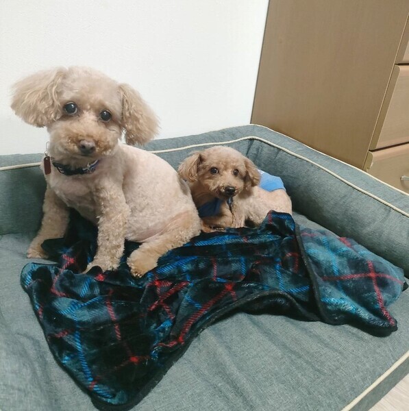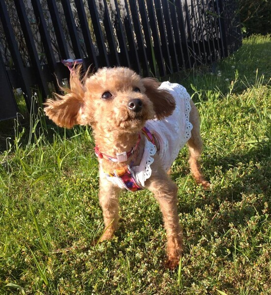 | 特徴(性格など) | ※お母さんのはるひちゃんと一緒に保護しました。 トイプードルの女の子なのはちゃんです。 3キロです。 被毛の色は、レッド?アプリコット?です。 年齢は、獣医さんが8歳くらいかなぁとのことですが、医療にかけてのんびりしたら若返る!と思われます^^ 保護して日が浅く歯科処置や避妊などの医療行為を済ませ、やっと落ち着いたところです。 普通の生活にもボチボチなれて甘えん坊さん♪ 走ってきて飛びついてお迎えしてくれるかわいい子です^^ が、男子には用心深くまだまだ吠えます。 抱っこされると固まるので、吠えたら抱っこを繰り返し馴らしてる最中です。 元気で体調も良いので、お散歩も練習中 おしっぽ丸めて、クン活しながら歩けます。 ほかの犬も平気です。 楽しいうれしいを少しずつ経験しています。 おトイレはサークルの中では、カンペキ! フリーの時は、まだまだフリーですので、おむつしています。 初めてがいっぱいのなのはちゃん、気長にお願いします。 ある程度の年齢ですので、環境(周りに親族や協力してくれるかたがいるとか)によりますが、そこそこ熟した熟年の方も飼っていただけるかもです。 |