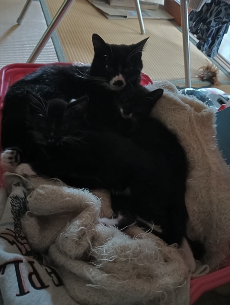| 里親募集する理由 | 私が63歳になりました。 近所の人が、飼育拒否で引き取った シロマルちゃんの子猫のです。 避妊をするにも、妊娠していました。 シロマルのはじめての子供です。 |