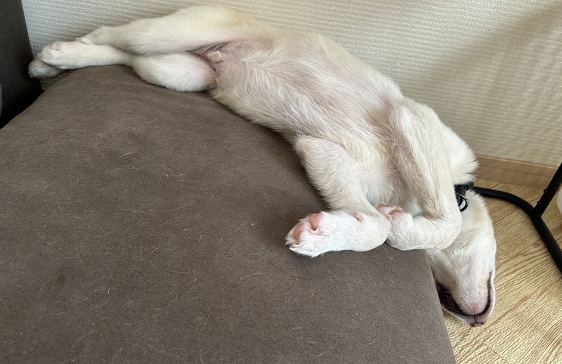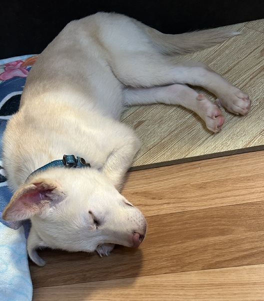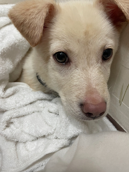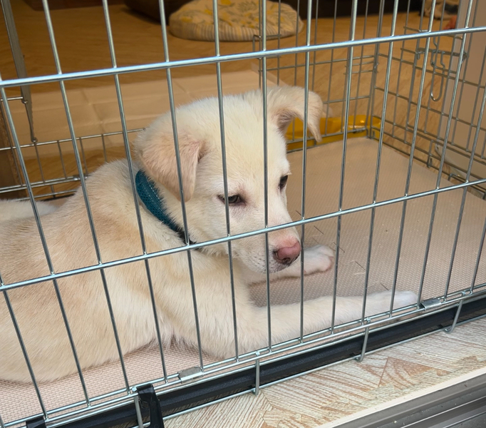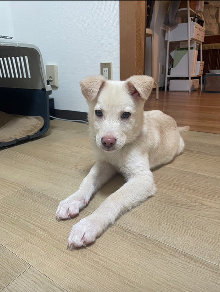| 特徴(性格など) | 基本的にはやんちゃで甘えん坊。まだまだ寂しがりで人の側にいると安心するようです。普通の子犬ですが、捕まった記憶から、人に捕まえられる(抱っこなど)を怖がりますが、人が大好きな子ですので、ゆっくり慣れていくと思われます。 犬と遊ぶことや人との引っ張り遊びなどが大好きです。 これから人慣れやクレートトレーニング、散歩練習などを始めていきます。 |