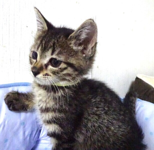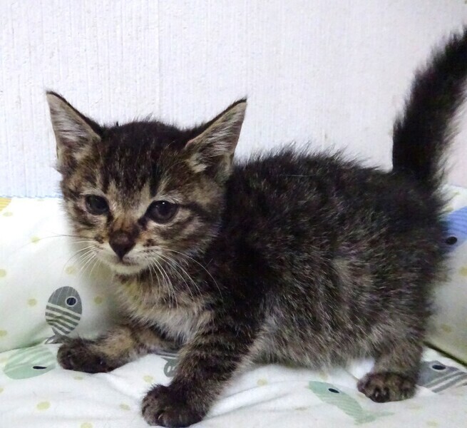 | 特徴(性格など) | 仮名: 和花(わか)ちゃん、メス 毛色: サバトラ、尻尾長い 性格: 個性はまだはっきりしませんが、割合大人しく、気が強い感じはあまりありません。 が、ご飯争奪戦になるときは、手を出して取られないように守っています。 真っ先にご飯をゲットします。 兄弟は仲良しなので、翔君と一緒の縁があると嬉しいですが、毛模様がそっくりで見分けがつきにくいので、別々でも構いません。 ケージに近づくとすぐに寄ってきますから、人は好きだと思います。優しい先住猫がいるお家でも大丈夫と思います。 まだ小さいので暫くは留守番時間が短めのお家でお願いします。 お届けは千葉県内で車で1時間位でお願いします。 検便済 駆虫済 3種混合ワクチン済 猫エイズ・白血病ウィルス検査は共に陰性です。 |