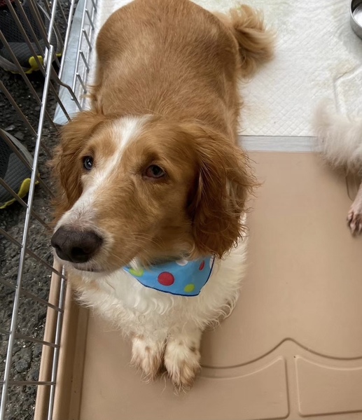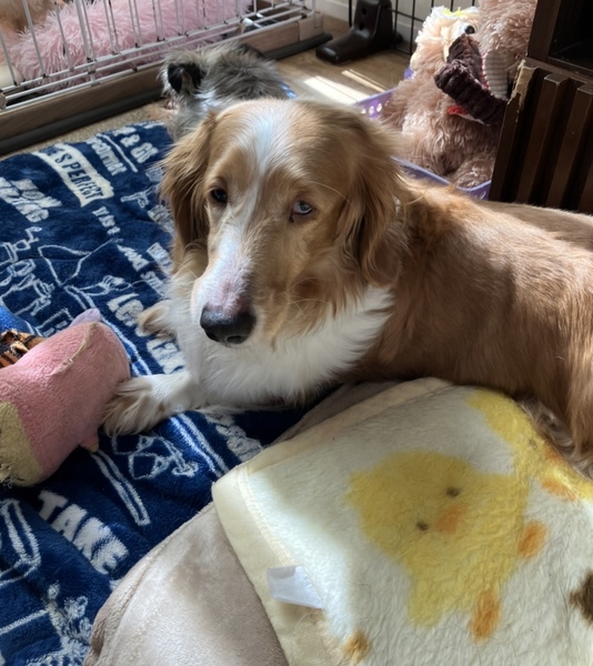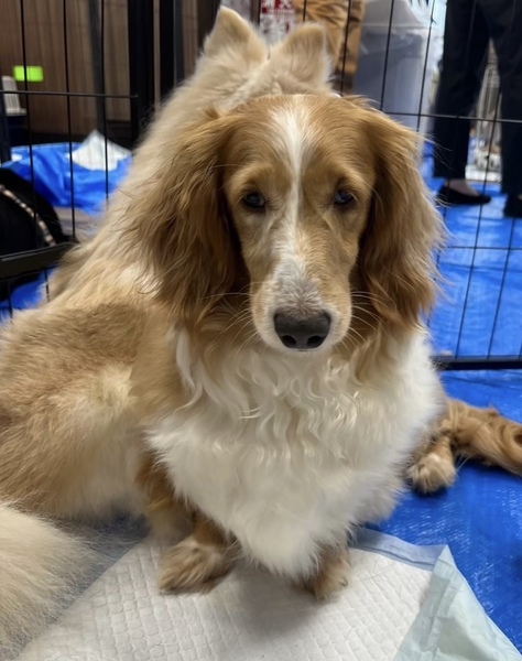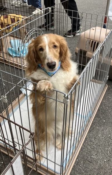 | 特徴(性格など) | こはるちゃん ミニチュアダックスフンド 女の子 推定5-6歳 体重7.5キロ 体は大きめのこはるちゃんですが、心はとても繊細な乙女ちゃんです。 初めは怖がりますが、慣れてくると控えめに近寄ってきます。 穏やかな性格ですが、遊びたい時は、鳴いてお誘いします。 ワンコと遊ぶのが大好きです。 オッドアイの為、視力が、少し弱いかもしれませんが、元気に走って遊ぶので、生活に支障はありません。 |
