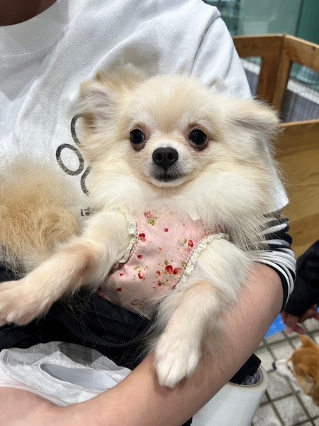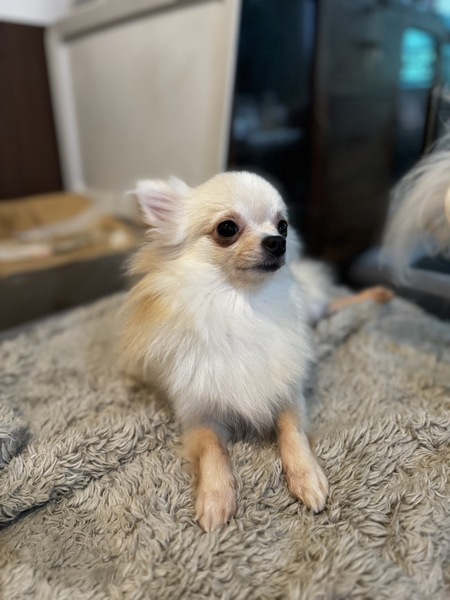 | 特徴(性格など) | 犬種:ミックス(チワワ×ポメラニアン) 毛色:クリーム 年齢: 2022/6/21生まれ 体重: 1.3キロ 性格:人大好きでとてもフレンドリーです。犬や猫にもフレンドリーで攻撃性はないです。 トイレ: シート認識50%くらい、トレーニング必要です。 散歩: トレーニング中 日常の様子:シャンタ君と遊んだりして過ごしています。声かけると走り寄って、膝の上に乗ってくる人が大好きな子です。 お手入れ:毎月のトリミング・毎日のブラッシング・歯磨き・耳掃除・涙やけケアなど ※トリミング犬種ではないですが、必ず毎月1回サロンでグルーミングをして可愛く清潔にして頂ける方、それだけの経済的余裕がある方を希望します フード: ランフリーに手作りや缶詰トッピングにアンチノール(サプリメント) 健康状態 フィラリア:マイナス ワクチン:5種混合ワクチン済 マイクロチップ:挿入済 避妊・去勢:済 その他:触診・聴診・血液検査・検便、異常なし、駆虫薬投与・ノミダニ駆除済み・スケーリング済み ★両足パテラG3〜4で手術しました。 大腿骨の関節も弱いので、何かの拍子に抜けて手術が必要になるリスクはあります。★経済的に余裕があって、お留守番のないファミリー希望です。 |