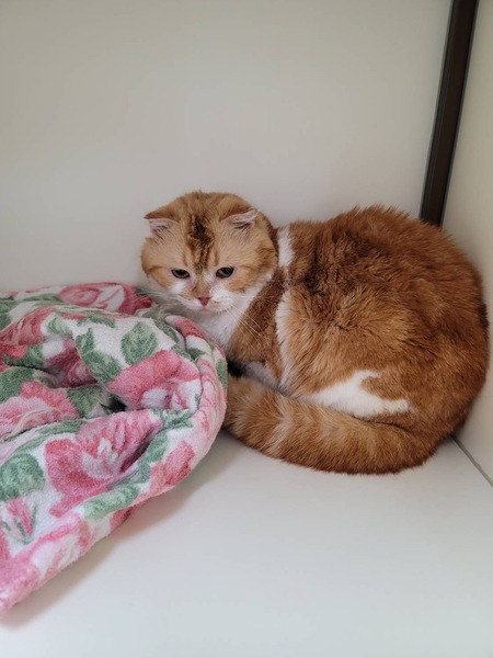 | 特徴(性格など) | 性別: オス 種類:スコティッシュホールド 年齢: 6才 体重: 2.8キロ 性格: フレンドリーで優しく温厚 トイレ: システムトイレで100% 日常の様子:大人しく、温厚で他の猫ちゃんとも仲良く出来ます。 お手入れ:シャンプータオルでこまめに拭いて、ブラッシングで清潔を保ってください フード: ロイヤルカナン 健康状態 抗体検査:(FIV・FeLV)マイナス ワクチン:3種混合接種済み 去勢:手術済み その他:聴診・検便 異常なし、ノミダニ駆除済み・駆虫薬投与済み |