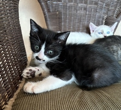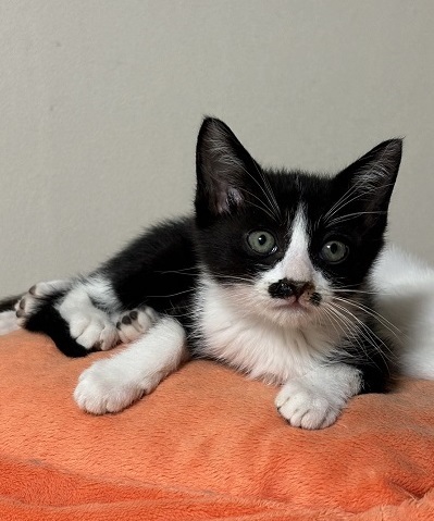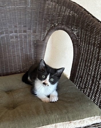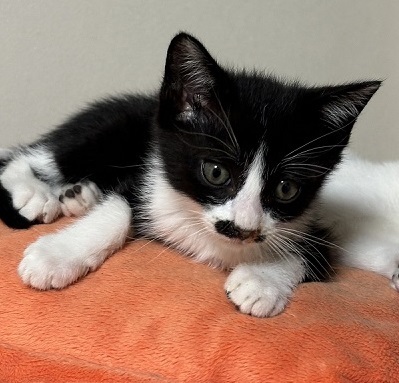 | 特徴(性格など) | ハチワレちょびひげの男の子 基本健診、ノミダニ駆虫、検便済 6/17ワクチン接種予定 子猫らしく興味深々で怖いもの知らず 人懐っこい子です |