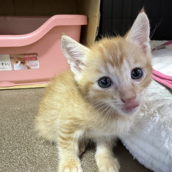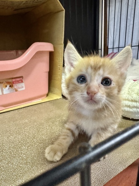 | 特徴(性格など) | 小柄な鍵しっぽの茶トラくんです。 のんびり屋さんのようで、ひとりでぼんやりしていることも。 フェルトボールがお気に入りです。 離乳済み 健康状態 良好 検便済み 体重 490g(6/6測定) ウイルスチェックは生後2ヶ月〜と獣医に言われましたので実施しておりません |