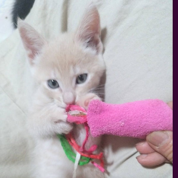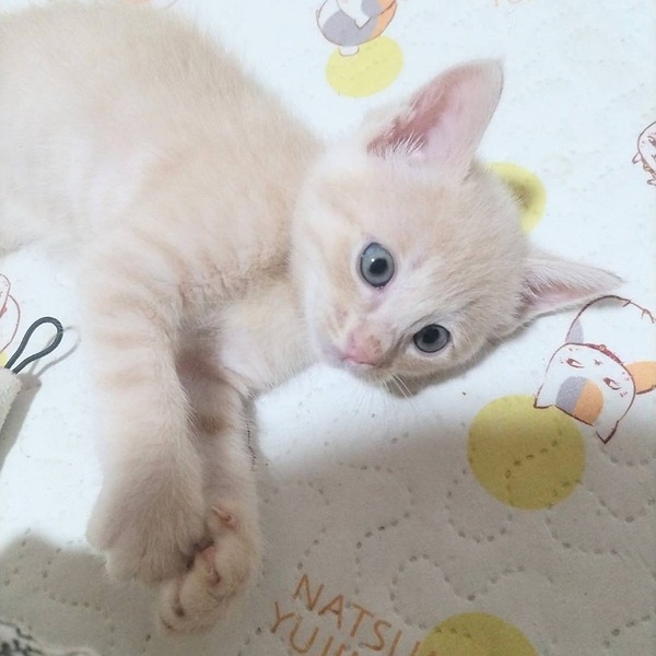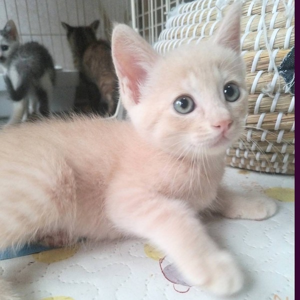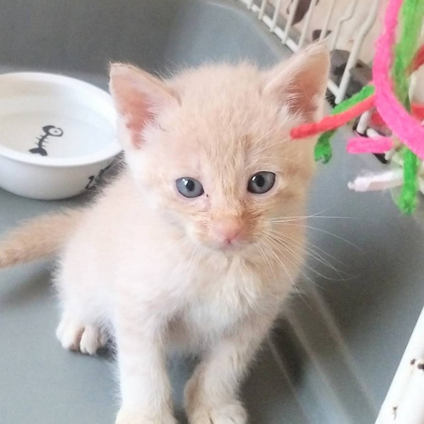 | 特徴(性格など) | 短毛でキレイなミルクティ色のミルくん。 抱っこすると大音量のゴロゴロは兄妹共通。 兄妹達の中でも体が大きくしっかりしています。遊びやご飯への反応はワンテンポ遅れて現れてあまりガツガツもせず横取りされてもそのままに〜なおっとりタイプの男の子です。 子猫なので留守番時間がないか短いお家。兄妹一緒のご縁を優先に考えています。 安全に暮らせるように脱走対策、お部屋の片付けを徹底してくださる方。 玄関や窓まわり、リビングなど対策が必要な場所の写真を見せていただけるとより提案がしやすいです。 |