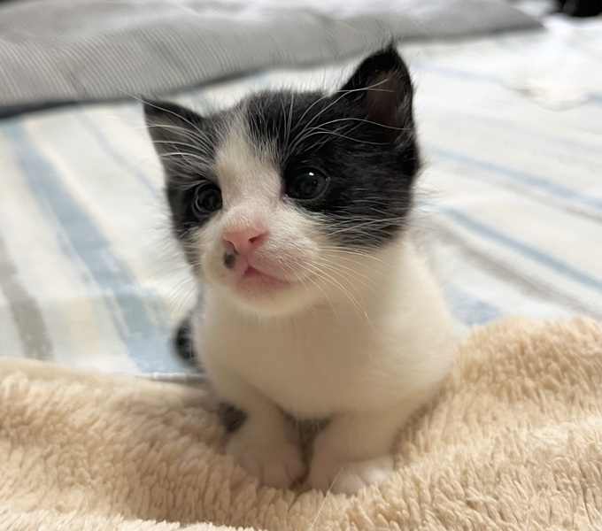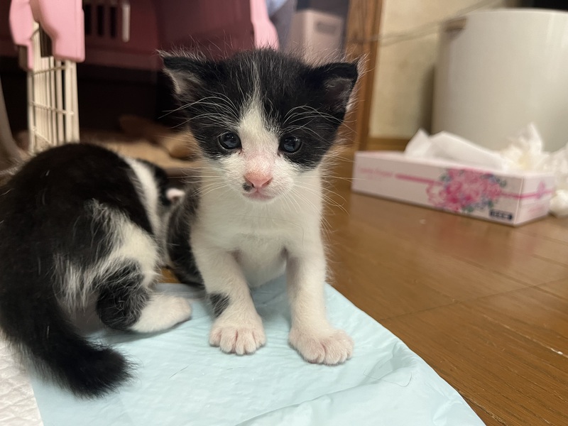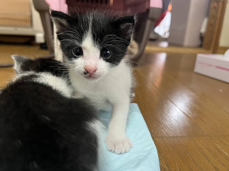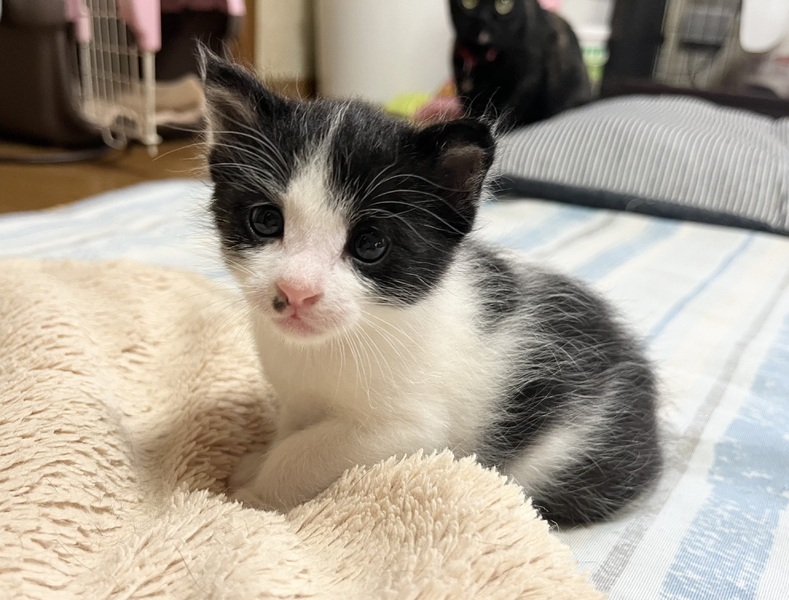 | 特徴(性格など) | https://youtu.be/IhGNuWM6H7E?si=0g3M4viH18vVVYuz ハチワレ白黒の男の子 右鼻の下に黒い小さな模様があります。 幸運の鍵しっぽ♪ 兄弟で1番大きいです。 よく食べ、よく出し、よく眠ります。 のんびりやで、おっとりさん。 活発な妹たちに比べると、大人しいです。 いつも眠そうな顔をしていて、ちょっと天然? ぼーっとしたお顔が可愛いです。 人によってきてゴロゴロと喉を鳴らします。 お膝によじ登ってくるようになりました。 ミルクから育てるととっても人慣れして甘えん坊になりますので、猫初心者の方にもおすすめです♪ 兄弟猫たちも一緒に募集しております。 体調の安定する月齢(生後1ヶ月半〜)まで育ててから譲渡となります。 オンライン通話で猫ちゃんの様子も見ていただけますので、お気軽にどうぞ☺️ インスタもやってます! |