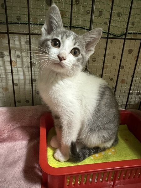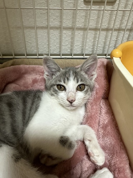 | 里親募集する理由 | 2~3日前から子猫が泣いていると、近所の方がガリガリに痩せた子猫を連れてこられ 引き取りました。 今ではすっかり、ふっくらして可愛くなってきました♬ |