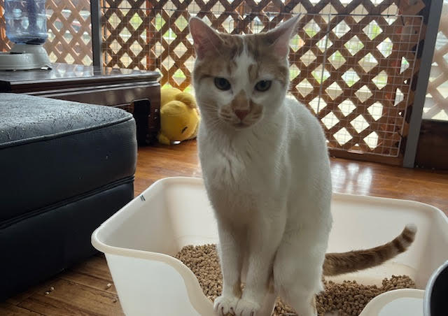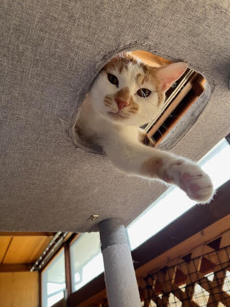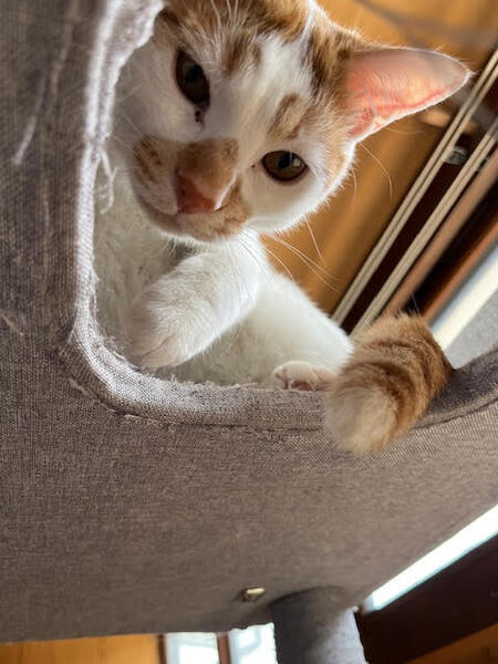 | 特徴(性格など) | お口の周りの茶色がちゃーみんぐなおもちくんです。 最初は全く触れない子でしたが、今では足元にすりすりと寄ってきます。 抱っこしようと逃げますが、タイミングがあえば触ることができます。ゴロゴロと喉を鳴らし可愛い子です。 ご家庭に入れば、もっと人馴れは進むと思います。 体は大きいほうだと思います。 |