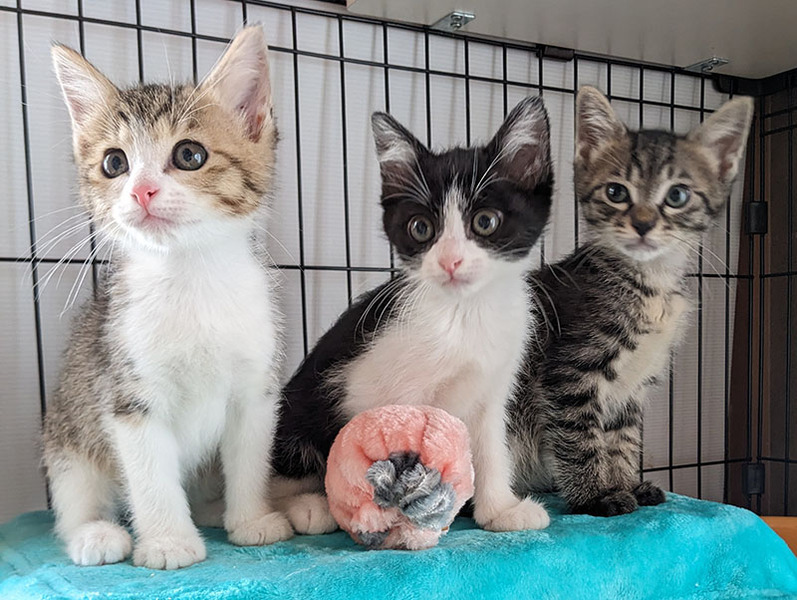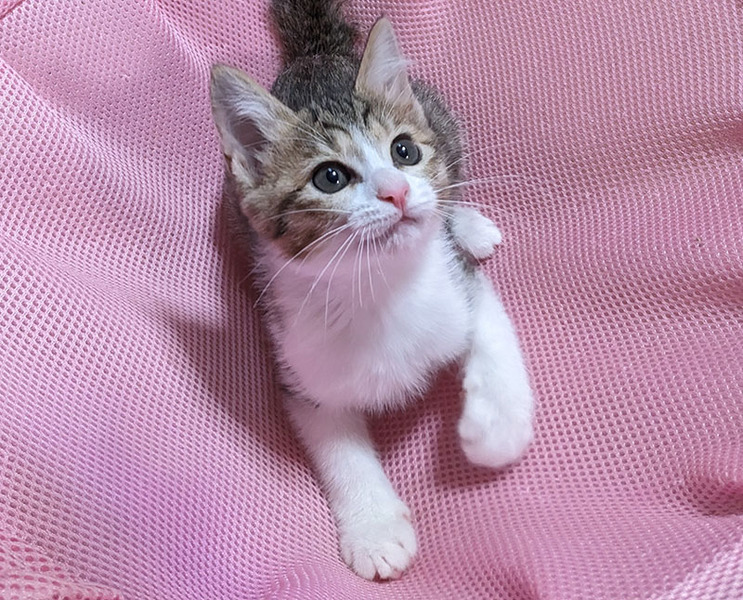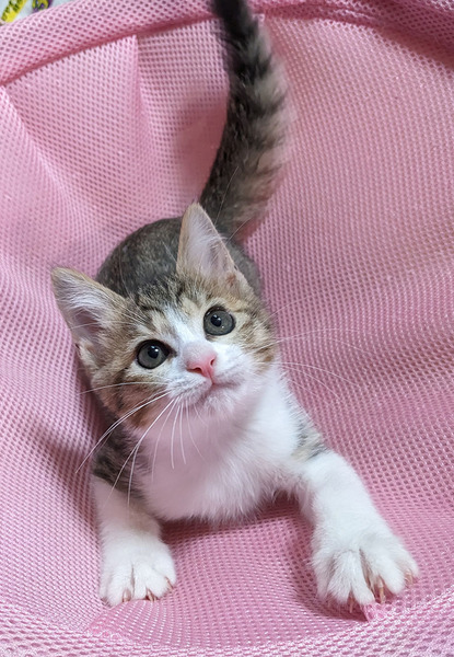 | 里親募集する理由 | 母猫が生後20日の6匹をJRの改札からほど近いビルの敷地で育てていると、子猫たちを探し回っていたボランティアの方から、連絡があり、保護を手伝いに行きました。 3匹はこちらで、他の3匹はボランティアの方がずっとのお家を探すことにしました。 |