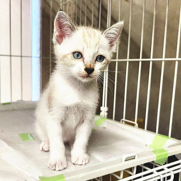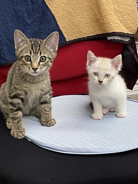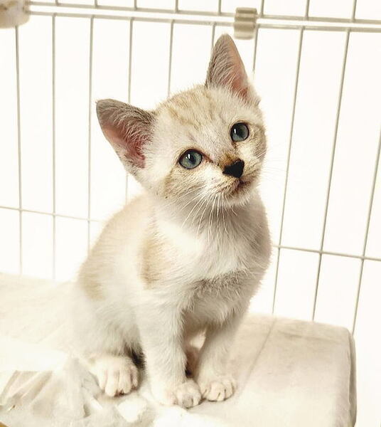 | 特徴(性格など) | ●猫の種類など 生後1ヶ月くらい シャム系MIX オス 仮名:つぶちゃん 尻尾は長くてまっすぐです。 ●健康状態 良好。食欲も旺盛です。 保護した当時は猫風邪を引いていましたが、少しづつ症状もおさまり大きな声で元気に鳴いておもちゃで遊んでいます。 これから日に日に綺麗になると思います。 甘えん坊で、撫でるとすぐにゴロゴロ言って、眠くなるとお膝に上ってきます。 ウィルスチェック エイズ・白血病共にマイナス ワクチンは近日中に実施予定 |