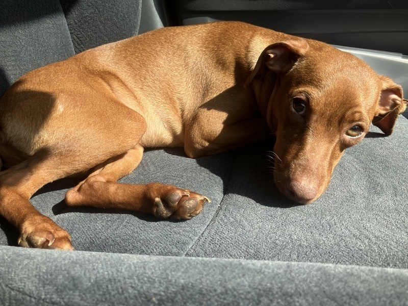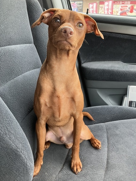 | 特徴(性格など) | 綺麗なレッドです キッチンやトイレやお風呂にまでついてきたがります 冬はトレーナーやセーターを着ていると中に入れてと鼻で裾をグイグイして入って寝始めます ドライブが好きで助手席で大人しくしています ドライブスルーの時は人や店内を観察したいようで窓に手を置いて中を眺めています 臆病で人見知りをしますが家族には甘えん坊な一面もあり寝る時やテレビを見てる時などは必ずくっついてきます 断尾断耳していません 現在垂れ耳ピンシャーです |