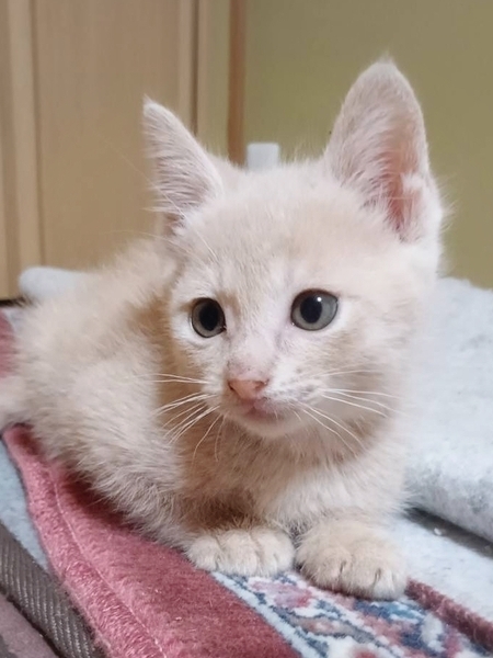 | 特徴(性格など) | 7月7日(日)12:00~16:00(最終申込15:30) ねこざんまい譲渡会【東日本橋会場】に参加予定です! 会場の案内はこちら♪ https://ameblo.jp/neko3mai/entry-12807190298.html ※猫ちゃんとのお見合いは譲渡会となります。 譲渡会ご来場につきまして、事前予約は不要です。 どうぞご家族みなさまでご来場下さい♪ ★★★ご来場前に必ずご確認下さい★★★ 《里親様へお願いはこちら》 http://www.neko3mai.com/condition/condition.html 《家族募集中猫ちゃん一覧はこちら》 http://www.neko3mai.com/entrycats/entrycats.html ◆ 名 前 ◆ ムチオくん ◆ 年 齢 ◆ 約2ヶ月 ◆ 性 別 ◆ 男の子 ◆性格は?◆ ミルクティー色の可愛さ爆発の男の子、ムチオくん。 まだ1ヶ月半ということもあり性格はハッキリしていませんが、現時点ではごはんも遊びもおっとりさんでマイペース。 これから心身ともに成長していきます。 子猫ちゃんを迎える醍醐味は見た目の可愛さはもちろんのこと、どんな性格になるのか分からないワクワク感ではないでしょうか! たくさんの『初めて』を経験して、個性豊かな唯一無二の存在になってくれると思います。 どんな子に育っても全力で愛してくれる家族を大募集中です! まだ小さな子猫ちゃんのため、兄妹2匹一緒にお迎えいただけるお留守番のないご家庭を希望しております。 ※若い先住猫さんのいるお留守番のないご家庭でしたら、1匹でも譲渡可能です ※幼稚園以下のお子様いるご家庭要相談 ※65歳以上の方がいるご家庭要相談 子猫のためまだ性格は決まっておらず、新しい環境の中で性格や行動が形成されていきます! 子猫は甘えるよりもとにかく遊びたいお年頃のため、成長共にヤンチャになり賑やかを通り越す位に元気いっぱいに成長していきます。 また、子猫は風邪をひきやすく、季節の変わり目や環境の変化で獣医さんに通う頻度が増えるかもしれません。 気持ちだけでなく、時間と経済面にも余裕があり、細やかなケアが必須となります。 それらを踏まえ、さらにお部屋中走り回られても問題ないよ!という覚悟と、ケガをしないようにきちんと整理整頓されたお部屋に自信のあるご家族をお待ちしております♡ 脱走や危険防止対策は必須ですので、ご理解・ご協力をお願い致します。 間取り図や玄関やベランダなどの写真をお持ちいただくと、対策の具体的なアドバイスがしやすいかと思います。 フードやキャリーバッグ、トイレ等、一部の準備品を指定させていただいております。 ペットではなく、《共に暮す家族の一員》としてお迎えくださるお家を希望しております。 先住犬や小さなお子様がいらっしゃるご家庭への譲渡は、ご希望に添えない場合がございます。 脱走や危険防止対策をしていただけないご家庭への譲渡は、大変申し訳ございませんが遠慮させていただいております。 |