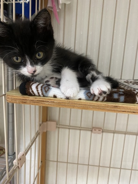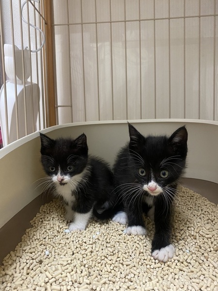| 特徴(性格など) | 白黒ハチワレ(オス)・・・ごはんより遊ぶの大好き元気いっぱいの男の子 白黒ハチワレ(メス)・・・一番小さいけど負けず嫌いな活発な女の子 キジトラ(オス) ・・・ごはん大好き!食欲旺盛な男の子 キジトラ(メス) ・・・恥ずかしがり屋のかわいい女の子 白血病・エイズともに陰性 寄生虫感染なし ノミダニ駆除 |