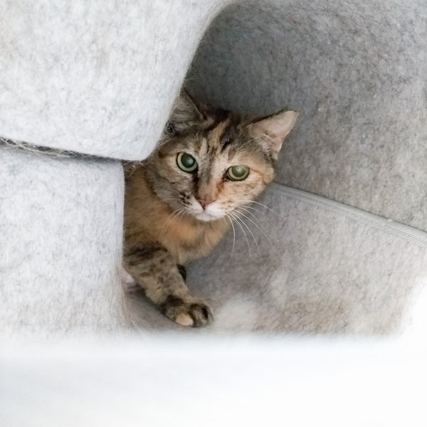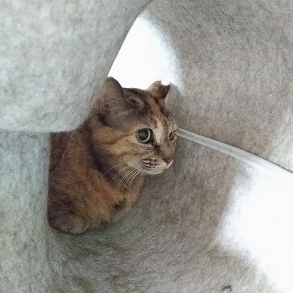 | 特徴(性格など) | 怖がりさんで、3段ケージ上のドーナツちぐらの奥によくいます。 ですが馴れた人からのブラッシングは大好き! いつもブラッシングの場所近くで楽しみに待っています。 馴れるまで時間が掛かると思いますので、ルームに通って少しずつ関係を築いていくというやり方もご一考いただけますと幸いです。 |