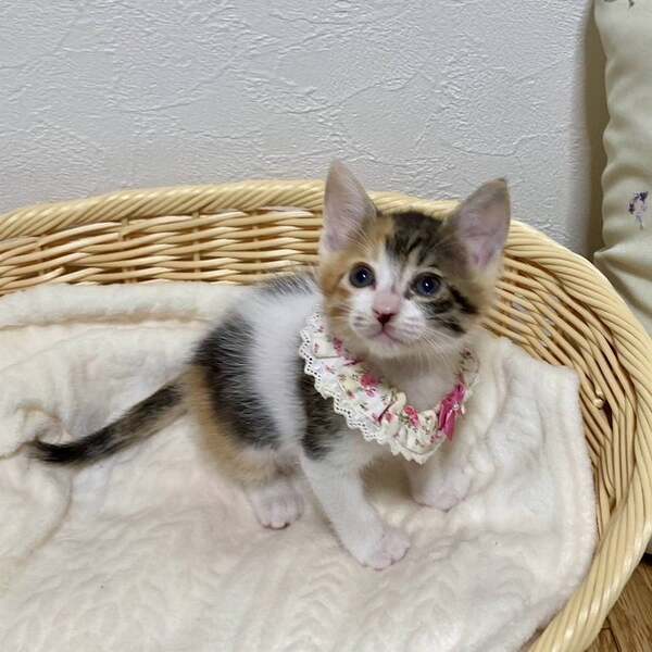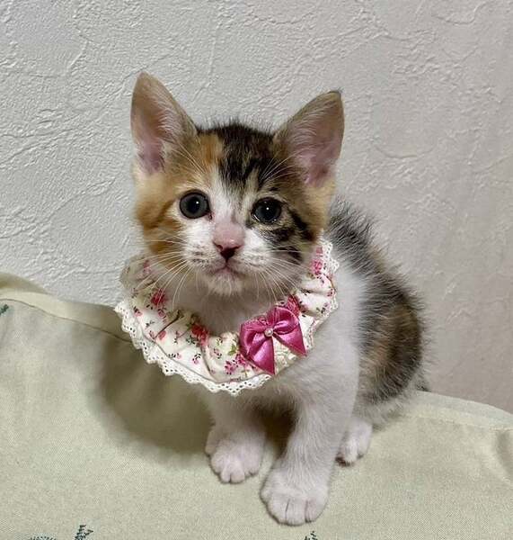 | 里親募集する理由 | あるお宅の玄関にもう1匹の三毛とともにいるところを保護されました。 妹と思われるもう1匹はかなり小さく当初より元気がなく、残念なことに育ちませんでした。 妹の分も音色を幸せにしてやりたいです。 |