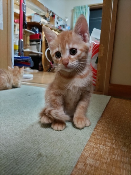 | 特徴(性格など) | 黒猫オス1匹と茶トラオス1匹メス2匹の四つ子の保護猫で、すごく元気です。トイレトレーニング済です。 | ||