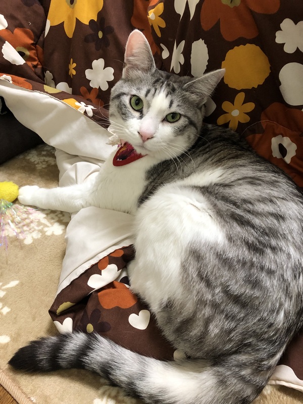 | 特徴(性格など) | サバ白、すごく甘えん坊ちゃんだけど抱っこは苦手、混ざってるので日本猫より少し大きいかと思います | ||