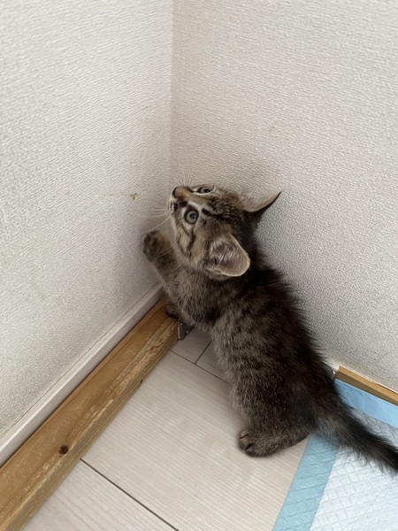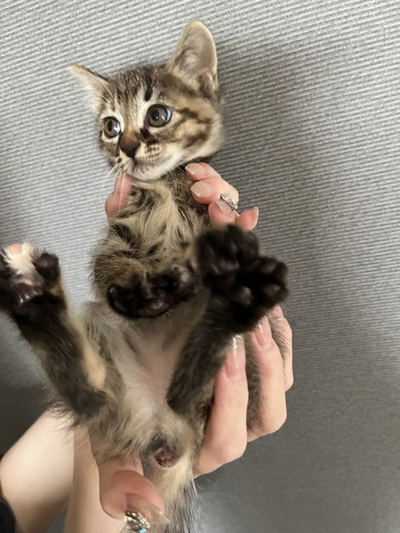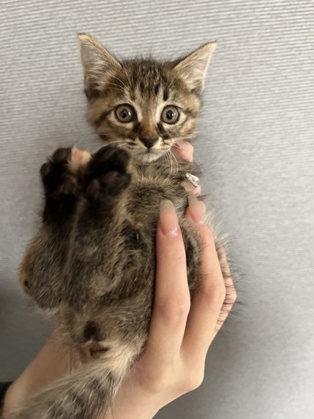 | 特徴(性格など) | 珍しいキジサビ柄です。 とにかく物怖じせず、他猫他犬問題無し。 元気はつらつです。 |