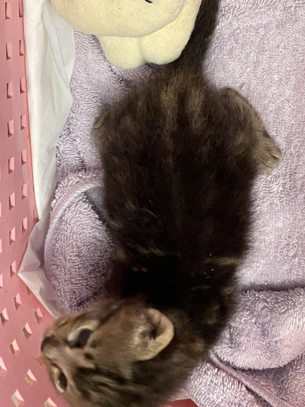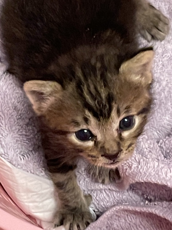 | 特徴(性格など) | お目目くりくりのおとぼけ君。 お腹いっぱいになると1人で遊び、すやすや眠るとてもやりやすい子です。やっと、目が見えて来たのかこちらを見る表情はとても可愛いです。撫でられるとゴロゴロいって甘えて来ます。 |