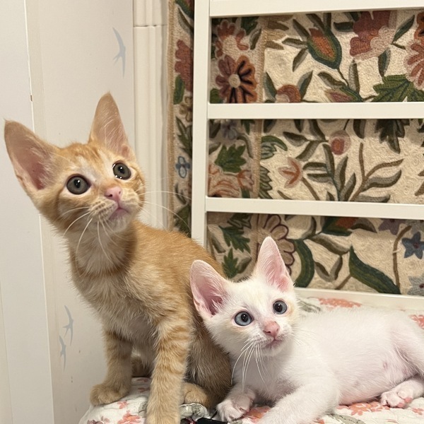 | 特徴(性格など) | ◎なぎさ(茶トラ)メス ◎ほのか(白)メス プリキュア組です。 ルックスも性格もとても可愛らしい元気いっぱいな姉妹です。 離乳前に保護され風邪の治療でたくさん手をかけましたのでその分超甘えん坊で全く物おじしない性格になりました。 ●健康状態 とても健康で元気です ウイルス検査(エイズ・白血病)陰性 ワクチン 駆虫 検便 シャンプー 爪切り |